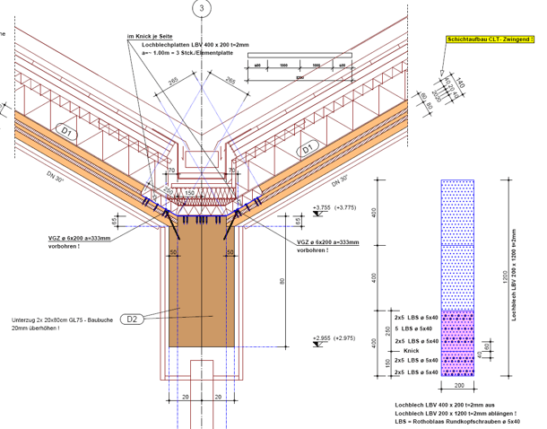 Holzbau in Brettsperrholzbauweise, Plattengründung, Treppenhäuser in Stahlbeton, Halbfertigteile;