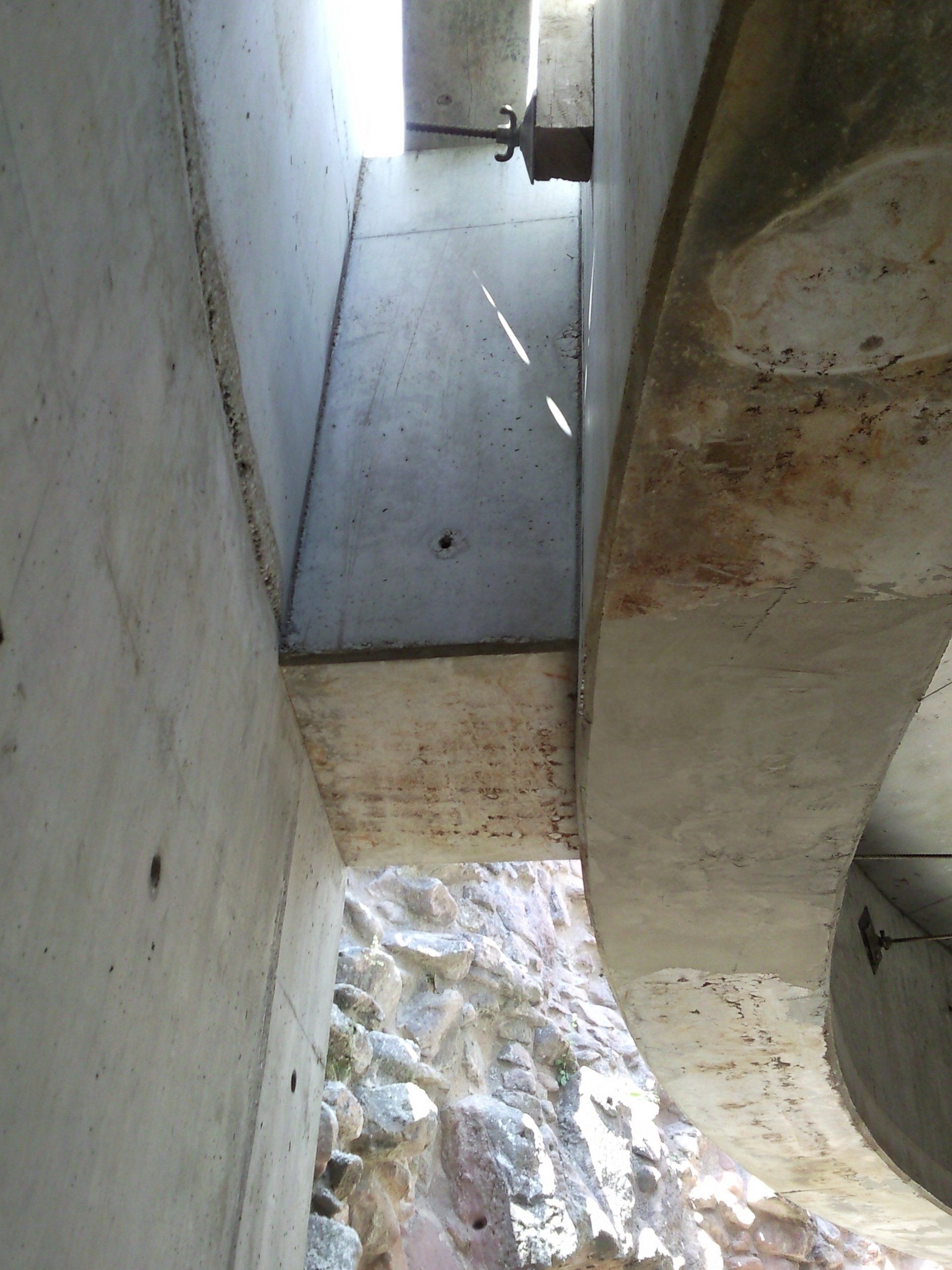 Schiefwinklige Plattenbrücke auf bestehendem Sandsteinwiderlager, Fertigteile, Montagezustände,